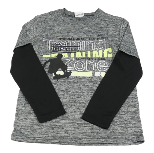 Sivo-čierne melírované tričko so skateboardistou a nápismi YIGGA
