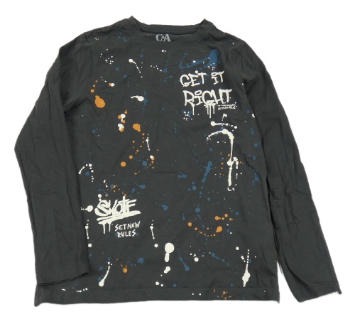 Tmavosivé tričko s nápismi a skvrnkami C&A
