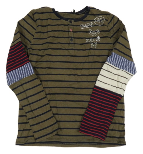 Kaki-tmavomodré pruhované tričko s výšivkou a farebnymi rukávy