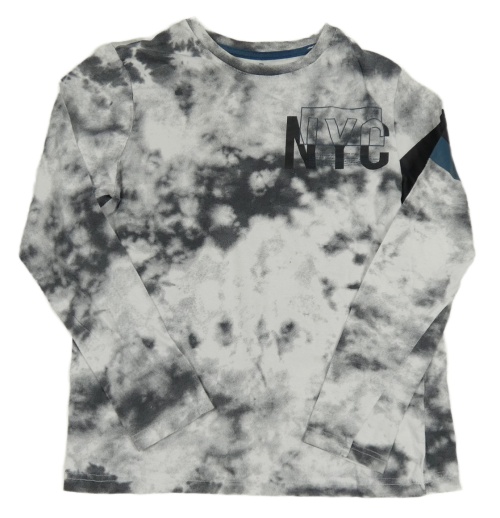 Sivo-biele batikované tričko s písmenky a pruhmi C&A