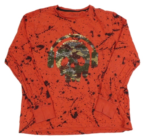 Červeno-čierne batikované tričko s lebkou z flitrů Next