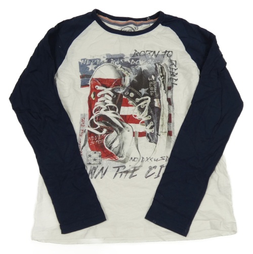 Tmavomodro-biele tričko s plátenkami a vlajkou C&A