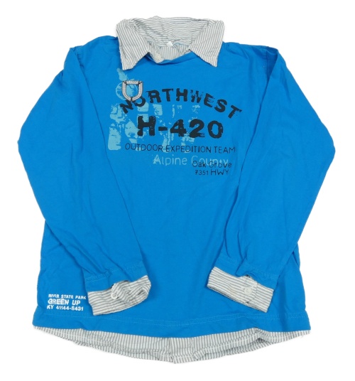 Azurové tričko s nápisom a košeľovým golierom C&A