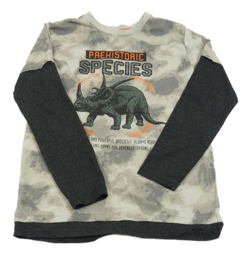 Sivo-antracitové batikované tričko s dinosaurom Y.F.K.