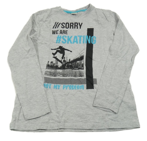 Sivé melírované tričko so skateboardistou a mostem Y.F.K.