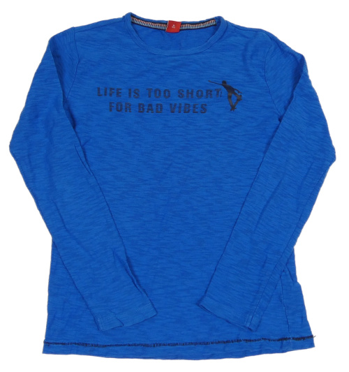 Cobaltovoě modré melírované tričko s nápismi a skateboardistou S. Oliver