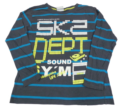 Sivo-modré pruhované tričko s pruhmi a potlačou