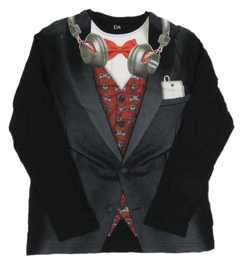 Čierno-tmavosivé tričko s potiskem saka s motýlkom a sluchátky C&A