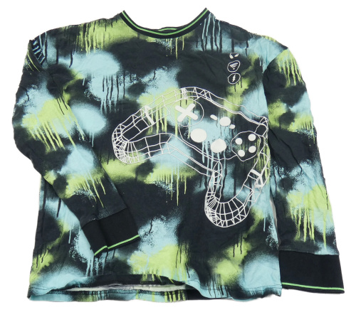Antracitovo-limetkovo-tyrkysové vzorované tričko s ovladačem Dunnes
