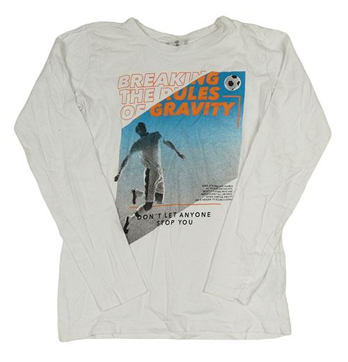 Biele tričko s fotbalistou a nápismi chapter young