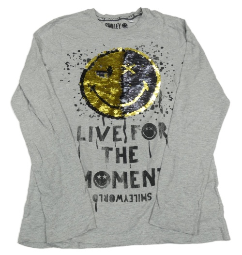 Sivé melírované tričko so smajlíkem z překlápěcích flitrů