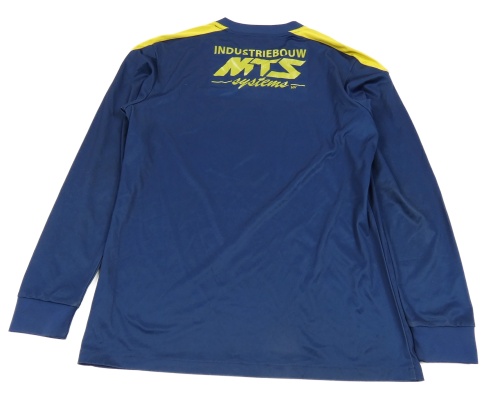 Tmavomodro-žlutý pruhovaný sportovní fotbalový dres s loptou a nápismi JAKO