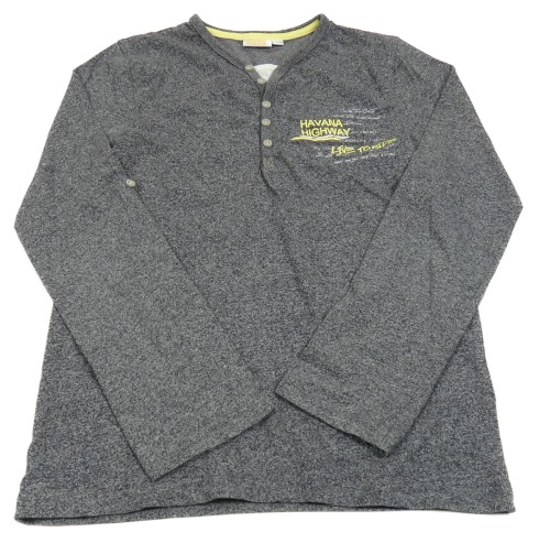 Tmavomodré melírované tričko s nápisom a gombíkmi