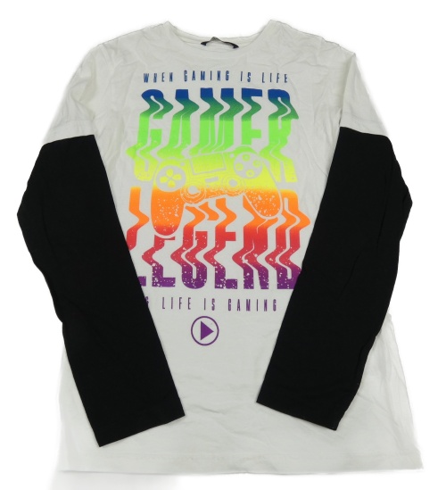 Biele tričko s nápismi a čiernymi rukávy George