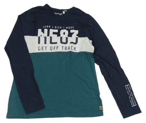 Tmavomodro-bílo/světlešedo-šalvějové tričko s nápismi a číslom C&A