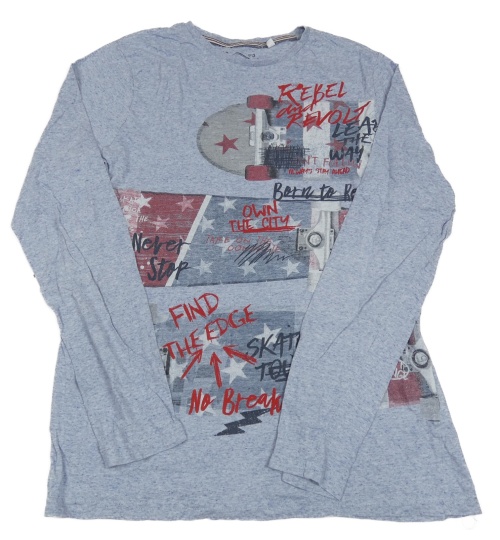 Svetlomodré melírované tričko so skateboardmi a nápismi C&A