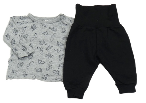 2set- sivé tričko s kaktusy+ čierne ľahké tepláky