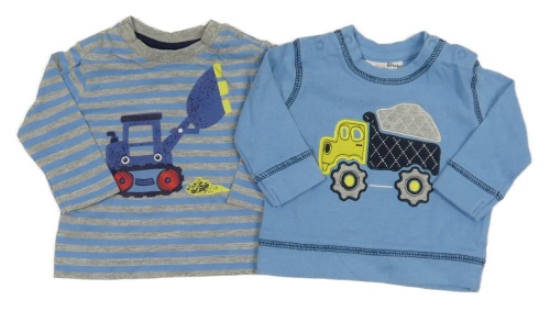 2set - modro-sivé pruhované tričko s bagrem + svetlomodrá mikina s autom Topomini