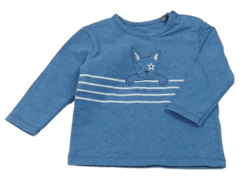 Modré tričko s prúžkami a psíkom