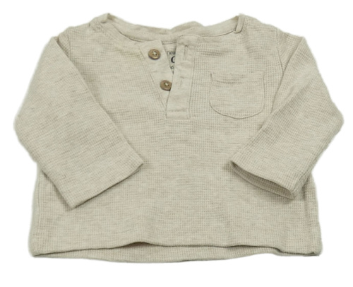 Béžové melírované rebrované tričko s vreckom a gombíkmi C&A