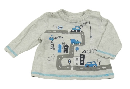 Svetlosivé melírované tričko s dopravními stroji a silnicí Topomini
