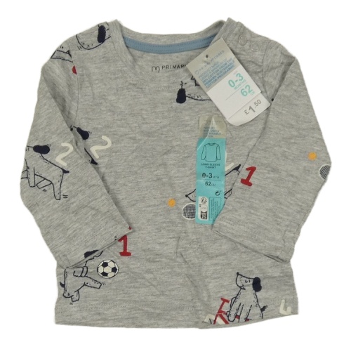 Nové - sivé melírované tričko s pejsky a sportovními potřebami PRIMARK