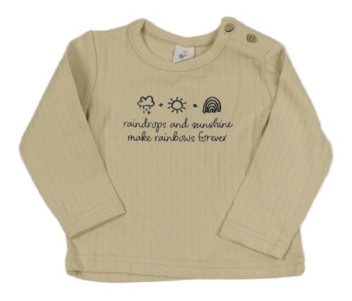 Béžové rebrované tričko s obrázkami a nápisom Topomini