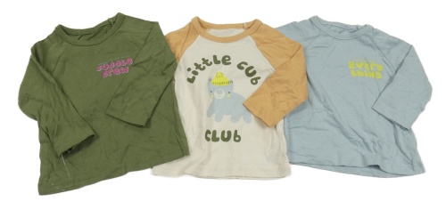 3set - 3x triko - světlemodré s nápisem + kaki s nápisem + smetanovo-horčicové tričko s medvedíkom