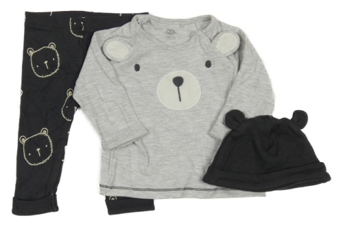 3set - Svetlosivé tričko s čumákem + antracitové rebrované ľahké tepláky s medvídky + čapica F&F