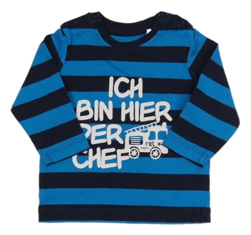 Nové - Tmavomodro-modré pruhované tričko s hasičským autom a nápisom Topomini
