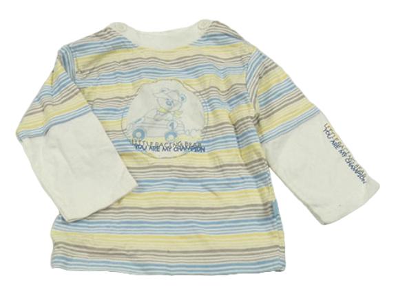 Smetanovo-farebné pruhované tričko s autom s medvěďom