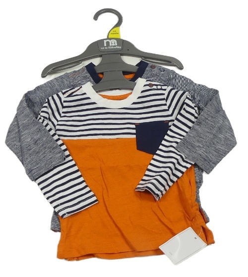 Nové - 2x - Triko - Oranžovo/bílo/tmavomodré melírované s pruhmi a kapsou, tmavomodro/bílé melírované Mothercare