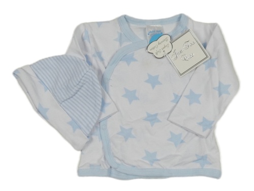 Nové - 2set - Biele zavinovací tričko s hvězdami + bielo-svetlomodrá pruhovaná bavlnená čapica