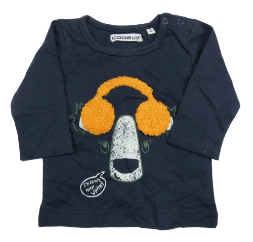 Tmavomodré tričko s medvedíkom a sluchátky CODE