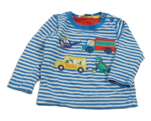 Modro-biele pruhované tričko s dopravními prostředky a dinosaurom John Lewis