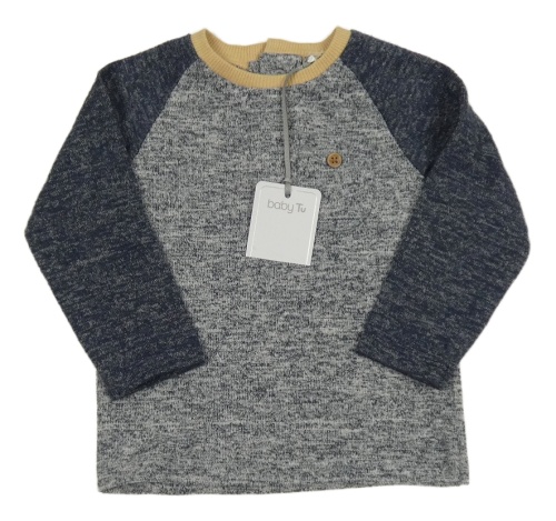 Nové - Tmavomodré melírované úpletové tričko s vreckom Tu