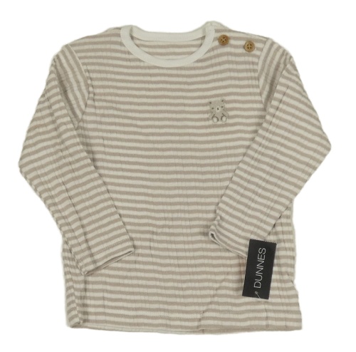 Nové - Smetanovo-hnedé pruhované rebrované tričko s výšivkou Dunnes
