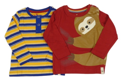 2x - Modro-žlté pruhované + červené tričko s lenochodem