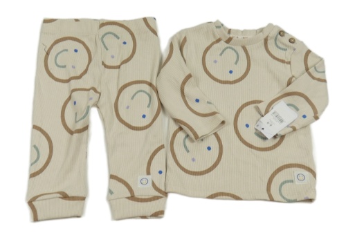Nové - Béžové rebrované tričko so smajlíky + tepláky George