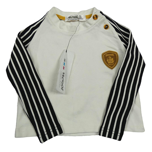 Nové - Smetanovo-čierne tričko s nášivkou a pruhy na rukávech