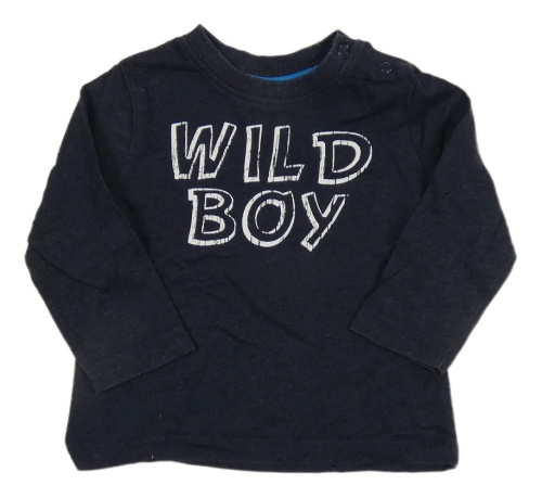 Tmavomodré melírované tričko s nápisom Topomini