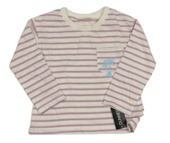 Nové - Bielo-fialové pruhované tričko s vreckom s palmami Dunnes