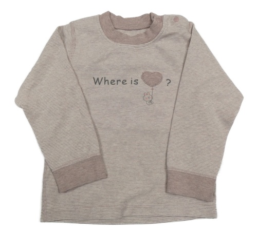 Fialovo-biele pruhované tričko s nápisom a obrázkom