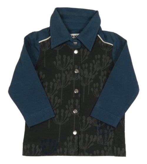 Antracitovo-tmavomodré prepínaci polo tričko s rostlinami