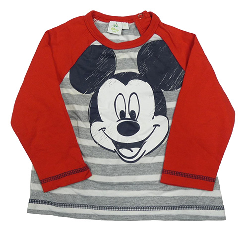 Sivo-bielo-červené tričko s Mickeym a pruhmi Disney
