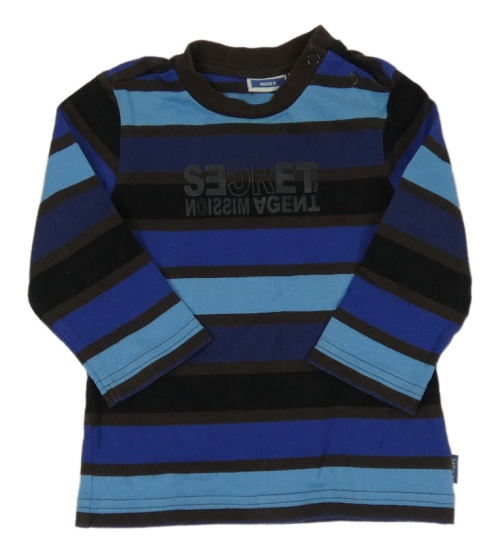 Modro-čierno-tmavomodro/hnědé pruhované tričko s nápismi Mexx