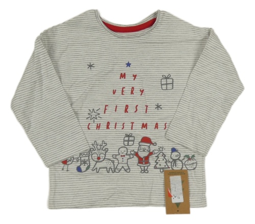 Nové - bielo-sivé pruhované melírované vianočné tričko s nápismi a obrázkami George