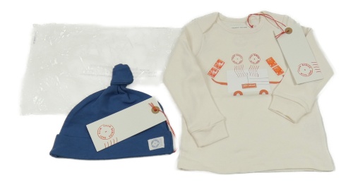 Nové - Smotanové tričko s potiskem + modrá čapica s nášivkou