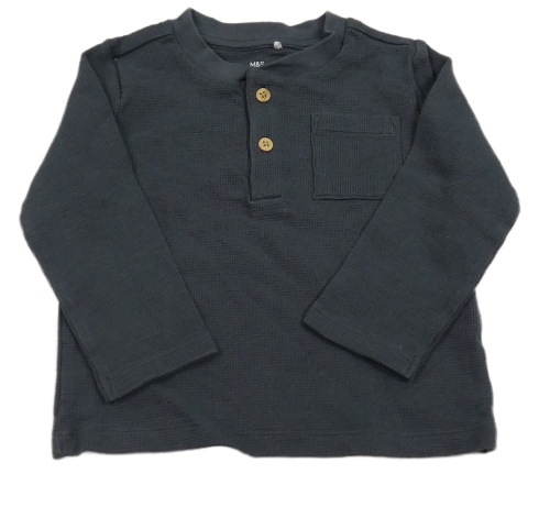 Antracitové rebrované tričko s vreckom a gombíkmi M&S