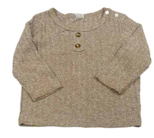 Hnedé melírované úpletové tričko s gombíkmi Shein